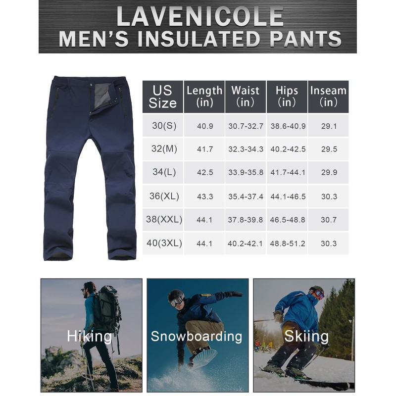 - Occasion - Insulated pants for men are great for winter casual wear or outdoor sports like skiing, snowboarding, snowmobiling, hiking, or motorcycling. Easy machine wash and dry. Please check the sizing guide for your specific build.