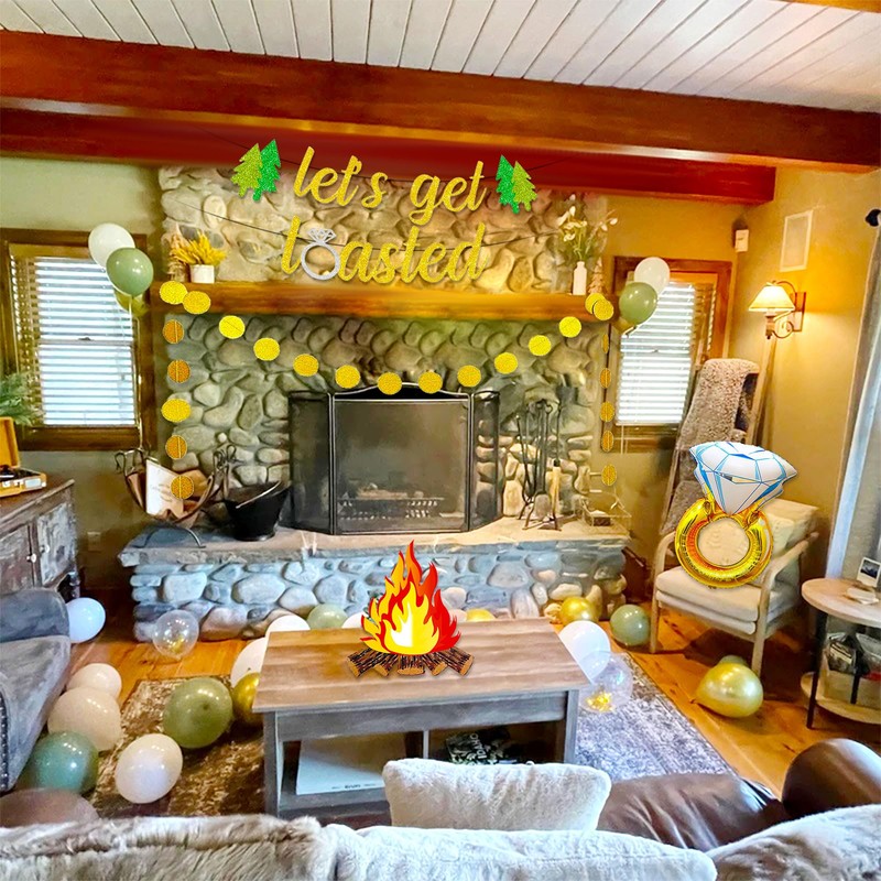 - You will get: Package includes 1 x LETS GET Toast banner, 1 x Ring Balloon, 1x fire decor, 20 x latex balloons 12inch and 10inch, 1 x green rain curtain, 1 set of hanging circle party banner.