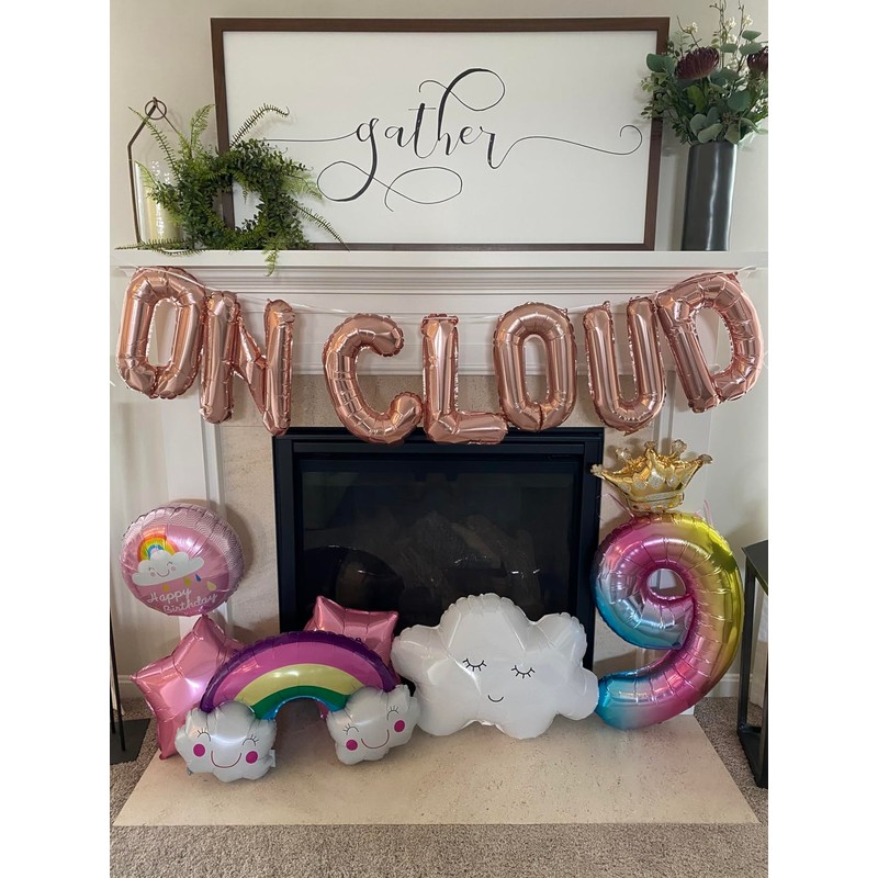 • The Package includes 1 x ON COULD balloon, 2 star tinsel balloons, 2 latex balloons, 1 rainbow shaped balloon, 1 rainbow patterned balloon, 1 number 9, a cloud balloon, and a happy birthday insert tag
