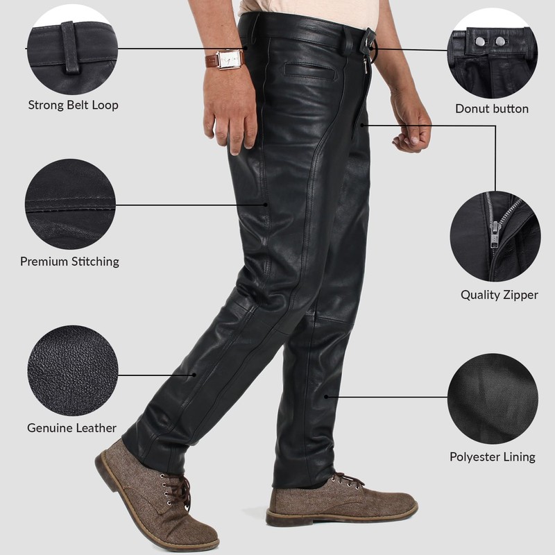 - ESSENTIALS PACKED: Our Mens leather Pants features premium stitching throughout, a smooth smooth zip closure, and two front & back pockets, dedicated for your valuables.
