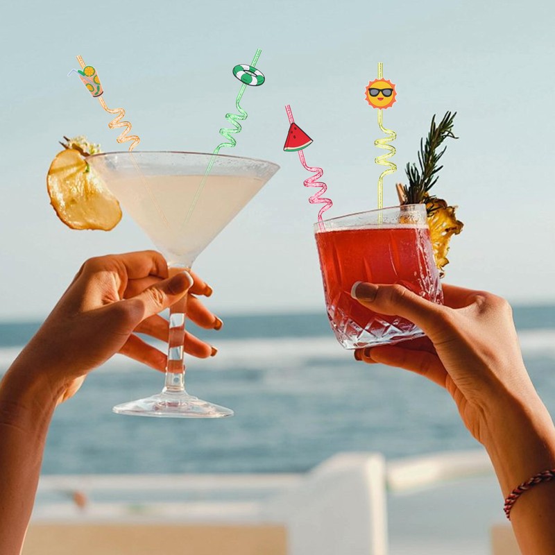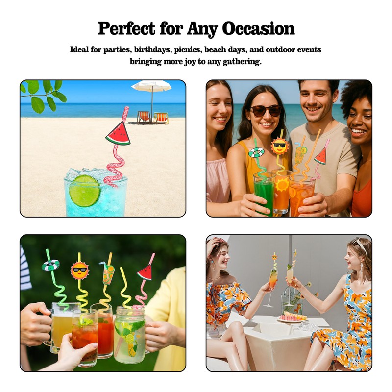 - Summer-Themed Design: Each reusable curly straw is topped with a bright, summer-inspired decoration. These adorable designs will make drinks look more appealing and are sure to bring a smile to any child’s face