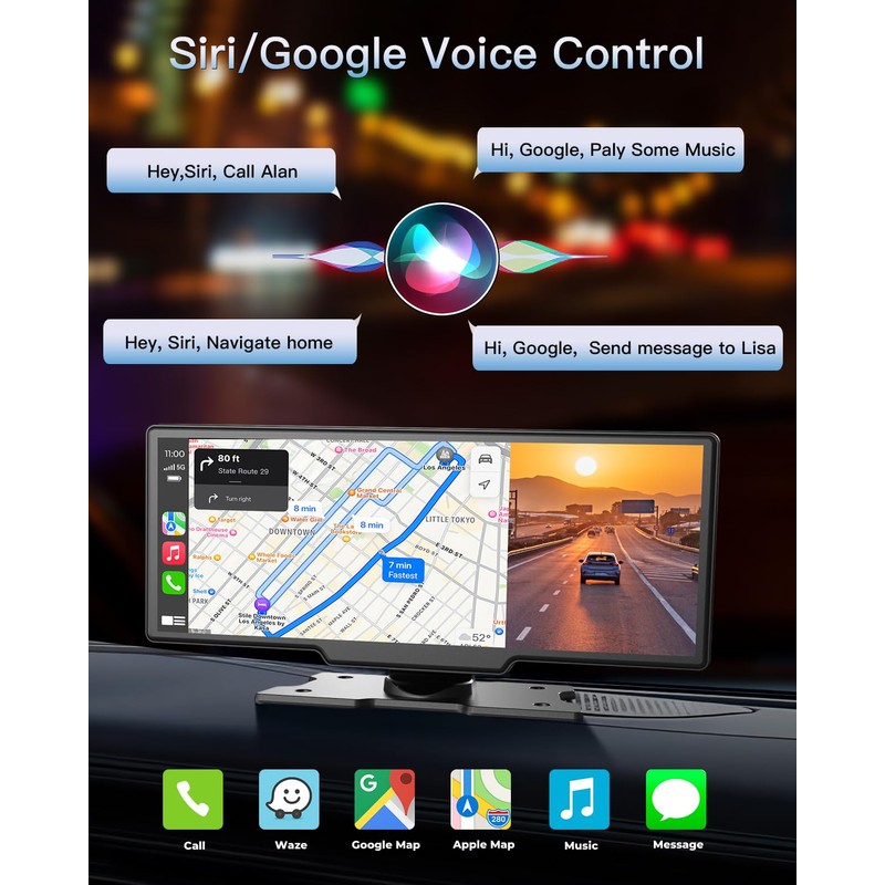 - ✅【 Smart Voice Command for Hands-Free Driving】 Keep your hands on the wheel and your focus on the road. With Siri or Google Assistant integration, make calls, send messages, and navigate effortlessly using just your voice. Stay connected while staying safe.