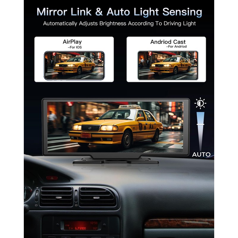 - ✅【Intelligent Screen Projection with Auto-Brightness Control】 Enjoy an entertainment haven on wheels! Project smartphone content onto your car screen with Apple Airplay and Android Cast. The auto-brightness control ensures optimal visibility, enhancing your viewing pleasure day or night.