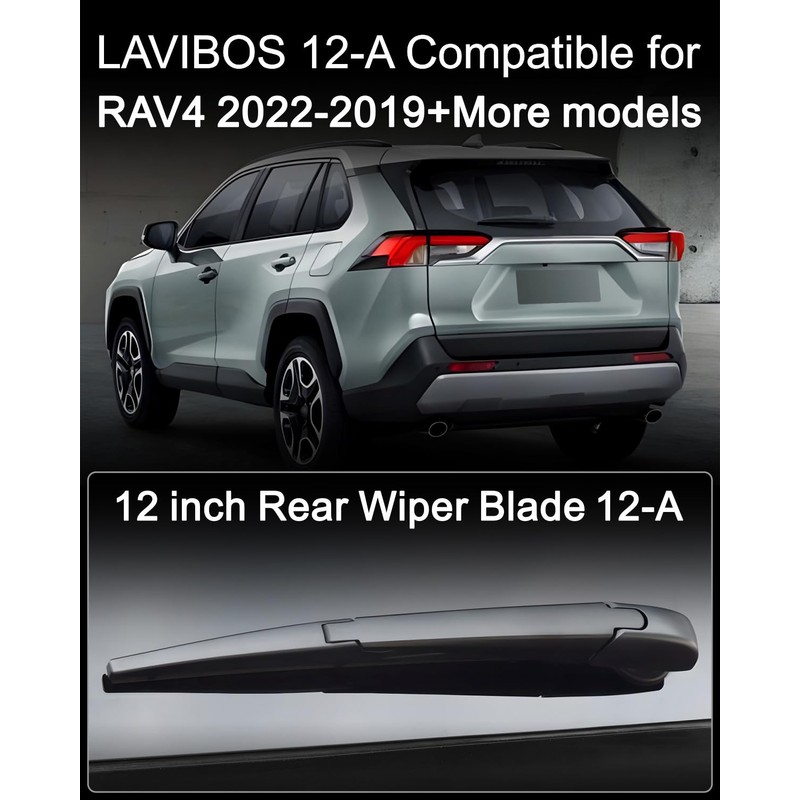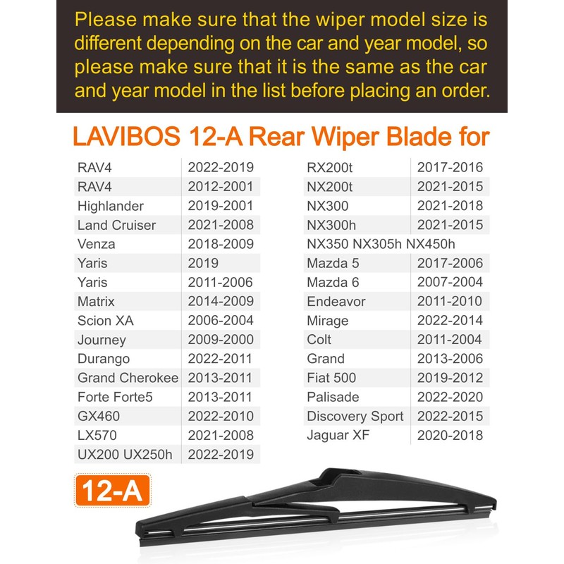 LAVIBOS 12 inch Rear Wiper Blade (12A), Back Window Windshield Wiper Blade for RAV4 22-19,12-01, Highlander 19-01, Land Cruiser, lexus NX, UX, GX460, LX570, Mazda 5 6, Fiat 500 (12-A/H307 /397011429)