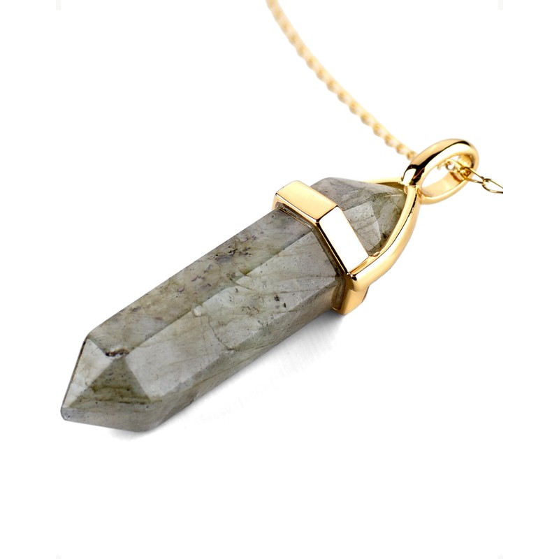LAVISA Obelisk Gemstone Necklace Gold Pendant Real Crystal Chain Necklace Ros...
