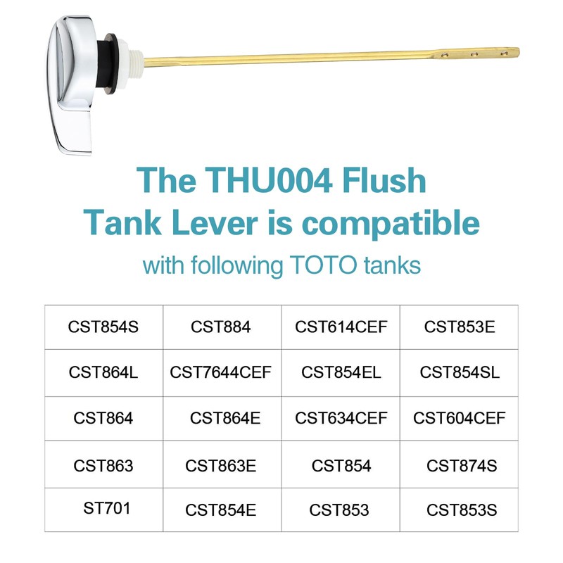 - Side Mount Toilet Tank Flush Lever: Compatible with TOTO THU004-CP Trip Lvr for ST701 CST854 CST884, etc. Universal design is suitable for most side mount toilet tanks. Please make sure to check the required lever type and size before purchasing