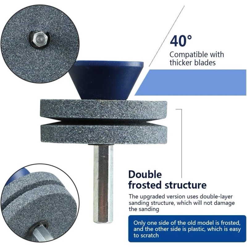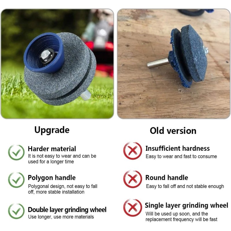 • 【Upgraded Version】: The new version Lawn Mower Blade Sharpener is different from the old version,New version Lawn Mower Blade Sharpener made of double layer corundum, strong and durable, quality item which will last long. There will be no melting of the Grindstone due to high temperature during grinding.