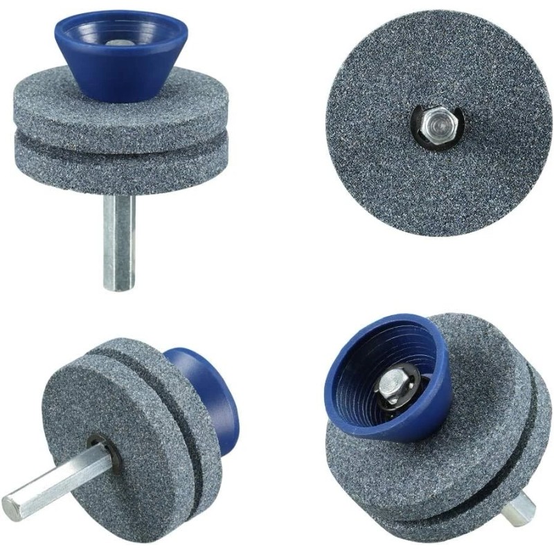 【New】 Universal Wear Resistant Lawn Mower Blade Sharpener, Quality Double Layer Corundum Lawn Mower Blade Sharpener for Any Power Drill Hand Drill, Double-Layer Grindstone Not Easy Damage-(Gray)