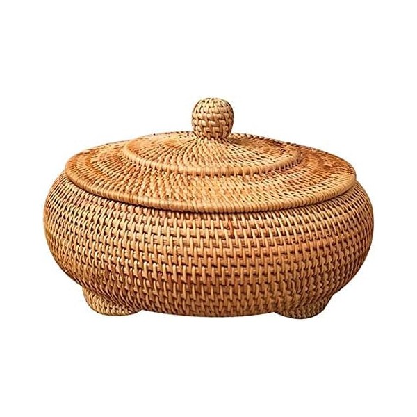 LAVNTM Round Rattan Boxes with Lid Hand-Woven,Wicker Fruit Basket 8.7 Inch Picnic Food Bread Table Storage basket (Honey Brown)