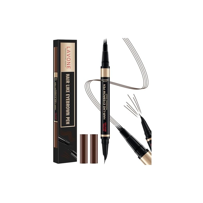 - LAVONE Curved Eyebrow Pencil, Waterproof Eyebrow Pen with 4 Tip Microblading Eyebrow Pen and Ultra-Precise Curved Brow Pencil, with Dual-ended Eyebrow Brush, 04 Dark Brown