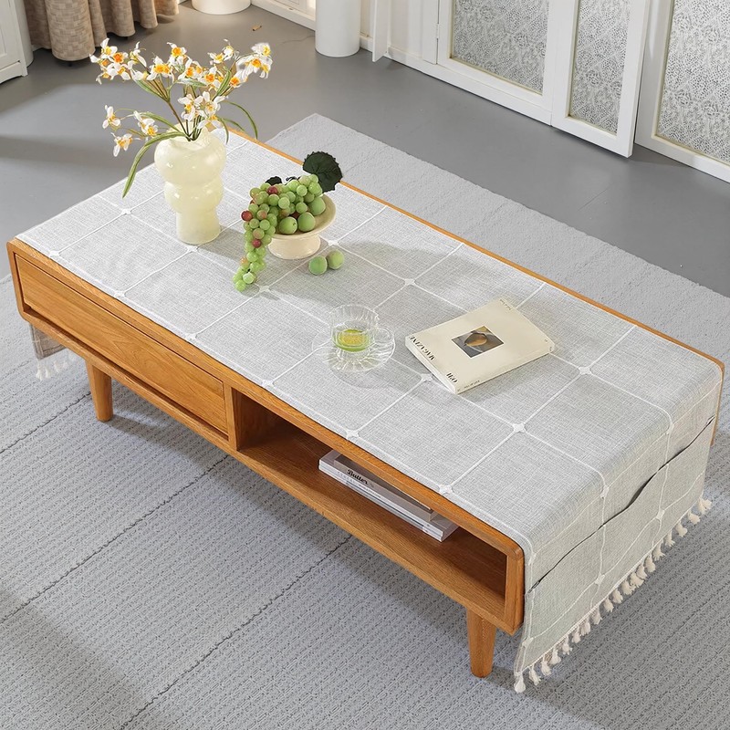 - 【Product Features】Coffee Table cloths are made of cotton and linen blended fabric, fabric soft and comfortable, touch smooth,Beautifully designed embroidered jacquard tassel hem, with a good dropping effect,with storage pockets on both sides, you can place small items, It is the best choice for rectangular tables and coffee tables