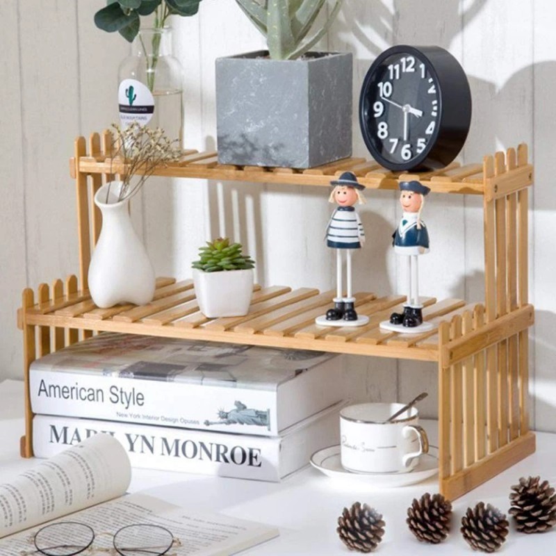 Lawei 2 Tier Table Top Bamboo Plant Stand - Desktop Flower Shelf Rack Flower ...