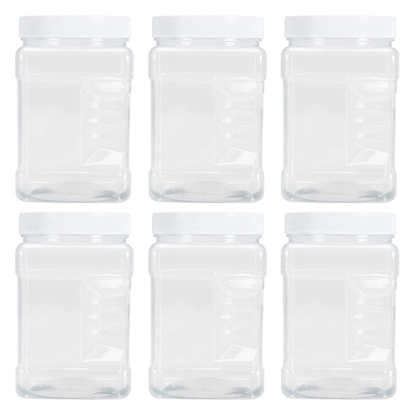 - Included 6 pack 30 oz Square Plastic Jars with Lids, each jar measures 5.7 inch tall with 3.6 inch sides, mouth opening 3.4 inch