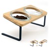 - [Thickened Bamboo Board]: Our elevated cat feeding bowl features a sturdy thickened bamboo board, odor-free, with a smooth surface that won't harm your pet. Its elegant hues can elevate any room's aesthetics, making it a stylish addition to your home decor.