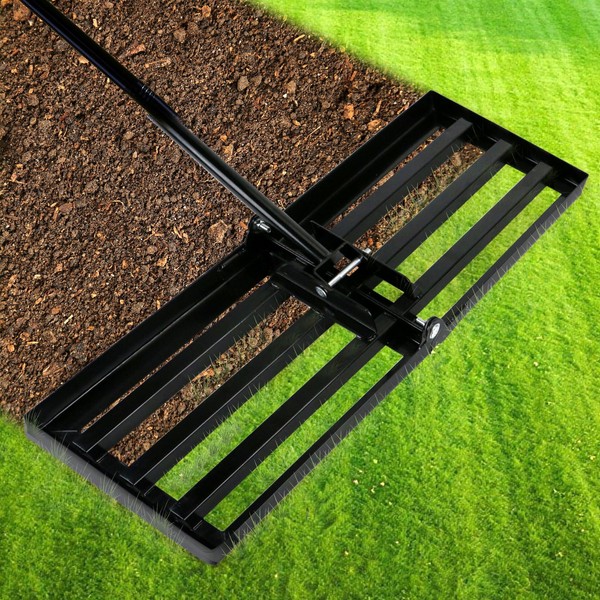 - [Premium Material] : Our yard leveling rake is made from durable 2mm-thick stainless steel, ensuring long-lasting strength and even weight distribution to prevent tipping.