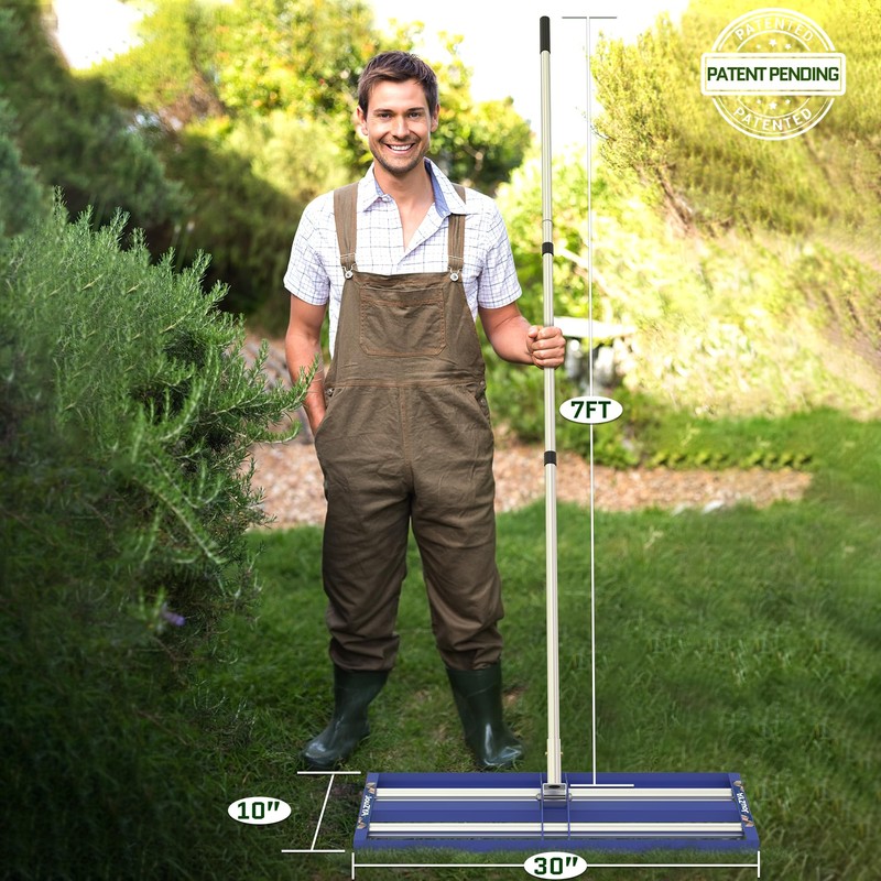 - Available in Two Ideal Sizes:Choose the perfect fit for your space—30"x10" or 40"x10". Whether you’re working on a small backyard or a large lawn, our leveling rake spreads soil, sand, or fertilizer evenly for a professional-grade finish