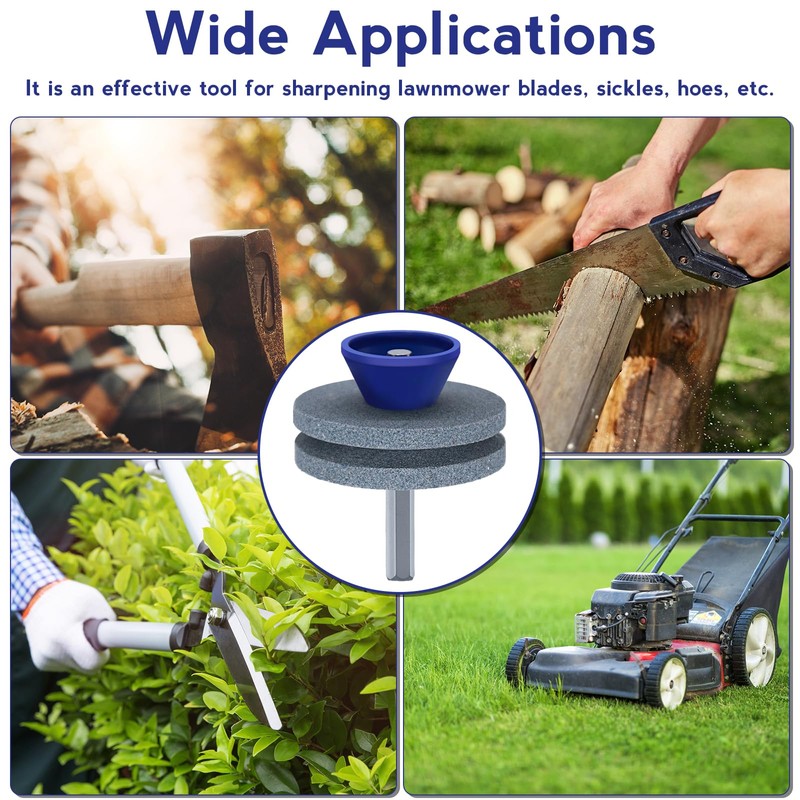 - WIDELY APPLICATION: The mower blade sharpener is specially designed for drill to sharp the lawnmower blade. Using in sharpening lawn blade, lawn tractors, mower, rototillers, garden scissors, drill blade, sickle bar cutter, etc.