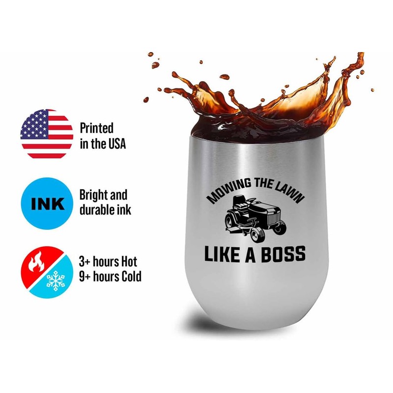Lawn Mower Silver Edition Wine Tumbler 12oz - lawn like a - Construction Worker Student Landscape Building Designer architecture
