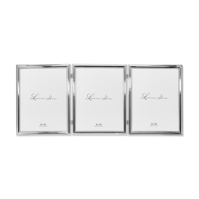 Lawrence Frames 510780T Silver Plated Double Bead 8x10 Hinged Triple Picture Frame