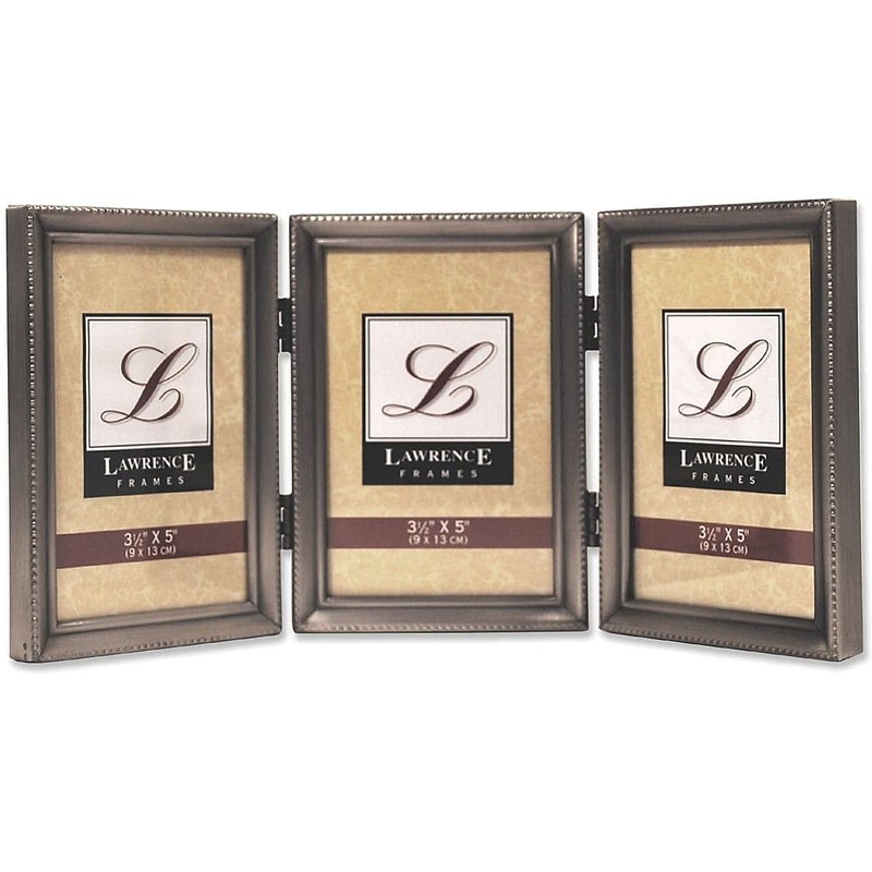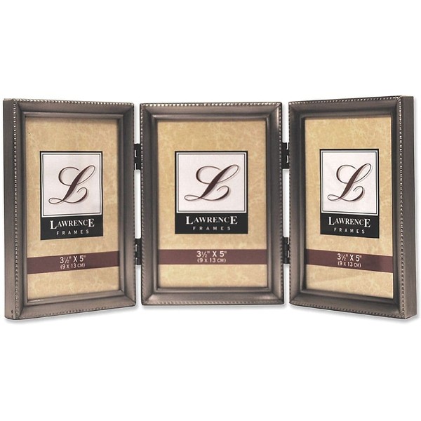 Lawrence Frames 11535T Antique Pewter Hinged Triple 3x5 Picture Frame - Beaded Edge Design