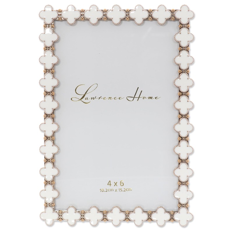Lawrence Frames Gold Metal Picture Frame - Clover Design - White Enamel - 4x6