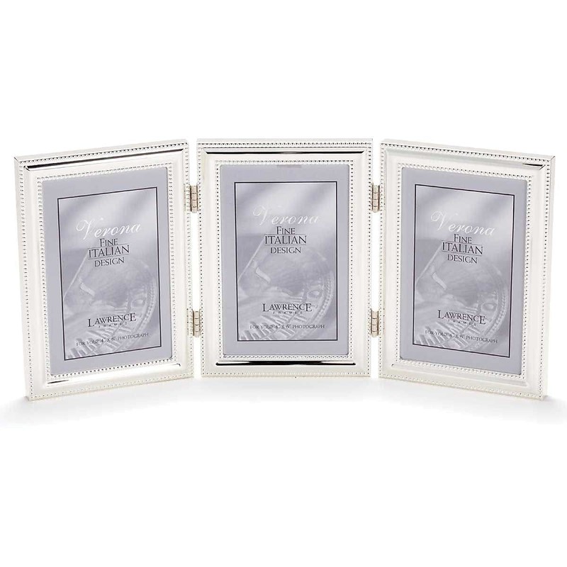 Lawrence Frames 4x6 Hinged Triple (Vertical) Metal Picture Frame Silver-Plate with Delicate Beading (510746T)