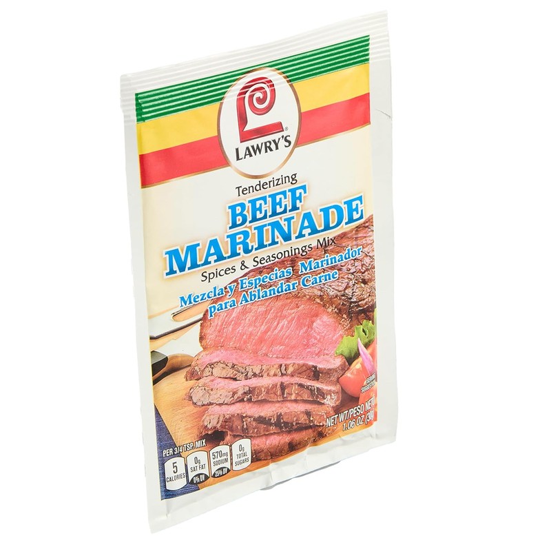 Lawry's Tenderizing Beef Marinade Spices & Seasonings are your go-to source for serving up a savory, mouth-watering meal friends and family will love. Featuring a blend of select natural spices to bring out the flavor of beef (including onion, garlic and turmeric), it only takes 15 minutes to transform any cut of steak into a mouthwatering, tender sensation. Simply combine meat marinade seasoning mix with 2/3 water, add meat and marinate. Or take it up a notch by reducing water to 1/3 cup and adding 1/3 cup dry red wine.