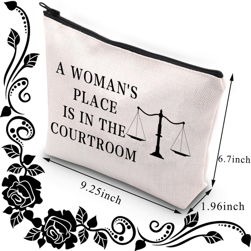 Lawyer Makeup Bag Future Attorney Gifts Legal Balance Gift Law Student Graduation Gift a Woman's Place is in The Courtroom Cosmetic Bag (Place in Courtroom), L9 W7 H0.39