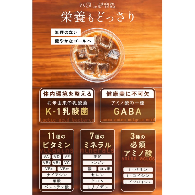 - 【不足しがちな栄養をどっさり配合】 無理のない健やかなゴールを目指すために、どっさりと栄養を配合。 体内環境を整える「K1-乳酸菌」と健康美に不可欠な「GABA」を始めとした栄養を23種類以上配合しています。