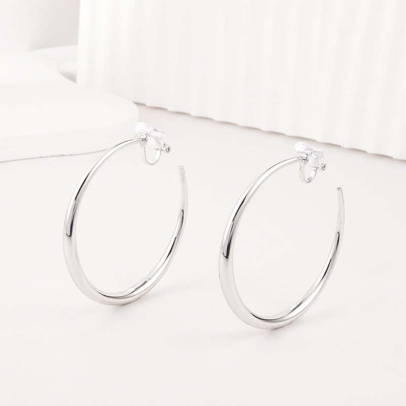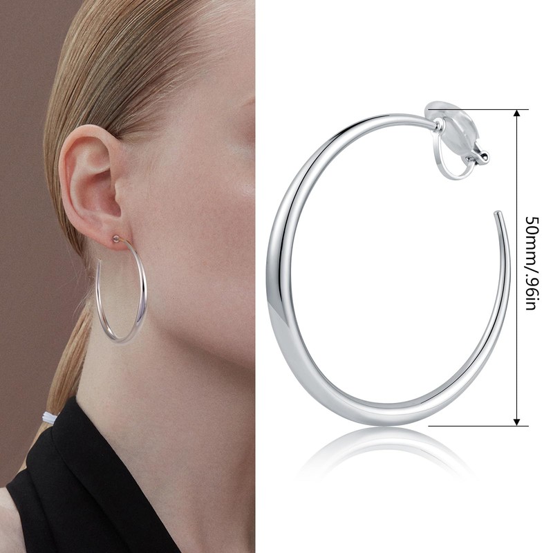 LAXPICOL Chunky Silver Hoop Earrings Clip On Earrings For Women No-piercing 1.96"