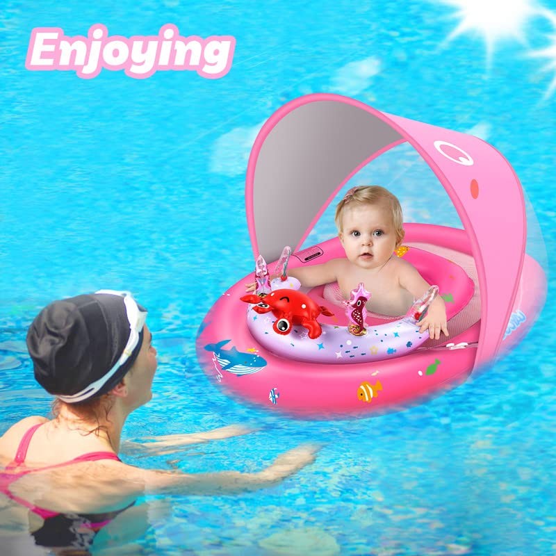LAYCOL Baby Pool Float with UPF50+ Sun Protection Canopy & Toy Play Console,Infant Baby Floats for Pool,Adjustable Safety Seat,Toddler Pool Float for 3-36 Months
