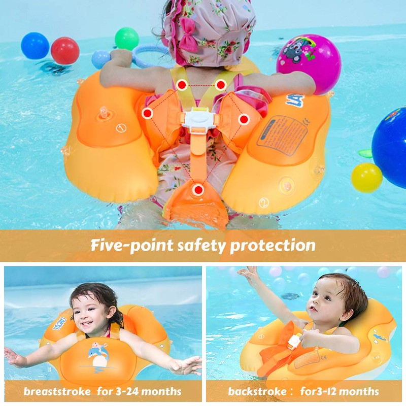 - 【Multi-Flod Safety Protection】Double-layered Air Chamber,Raised Front,Widened Sides,Shoulder Strap,Abdomen Support,Bottom Croth,keeping infant in place to advoid forward overturning,flip over or sliding out,safety is always the first