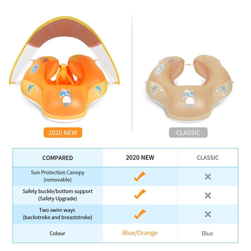 - 【Removable Canopy】The baby float for pool come with a breathable and removable UPF50+ sun canopy to protects baby’s skin away from sun,enjoying summer time anytime,anywhere