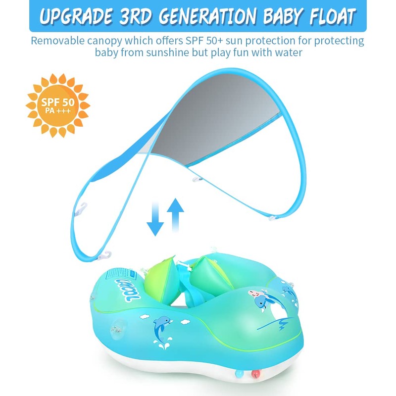 - 【Removable Canopy】Enjoying summer time anytime, anywhere,The baby float for pool come with a breathable and removable UPF50+ sun canopy to protects baby’s skin away from sun.