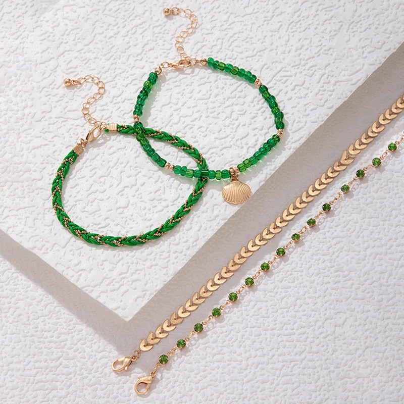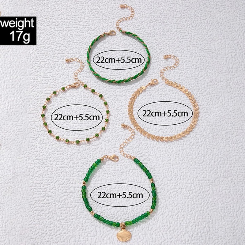 Layered Beaded Anklet Bracelets Set for Women,Boho Handmade Adjustable Waterproof String Shell Ankle Bracelet Beach Foot Jewelry (Green)