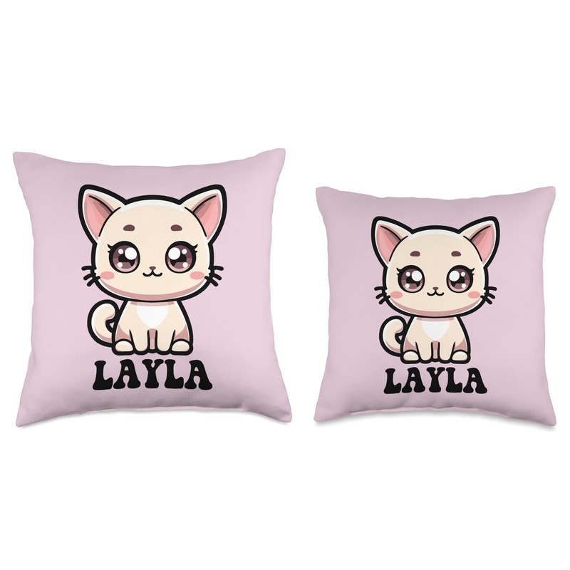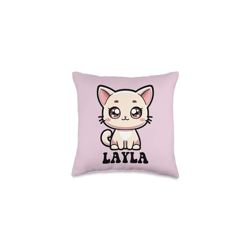 Layla Cute Kitty Cat Design for Girls Name Layla Throw Pillow