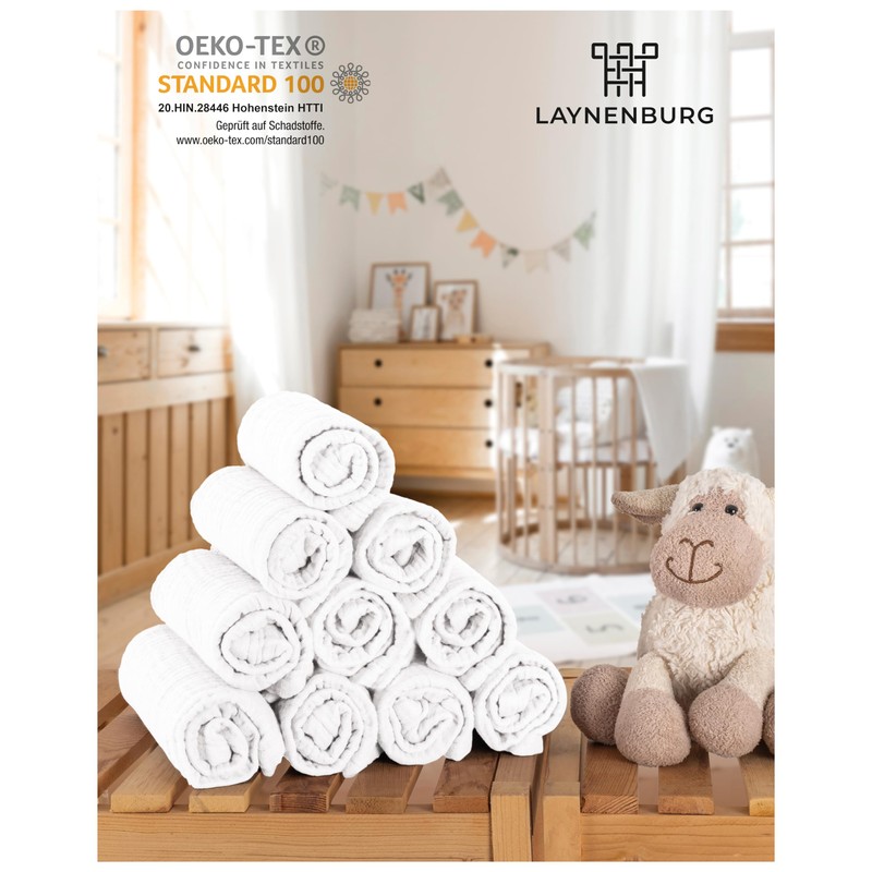 LAYNENBURG Set of 10 Premium Burp Cloths Baby Made of Extra Soft Muslin - 100% Cotton - 30 x 50 cm - Oeko Tex 100 - Muslin Cloths as Muslin Nappies or Cloth Nappies (White)