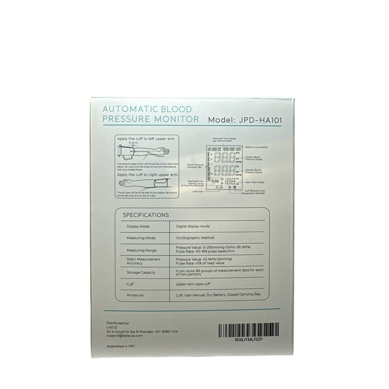 LAZLE Automatic Digital Blood Pressure Monitor Machine Upper Arm Cuff JPD HA101