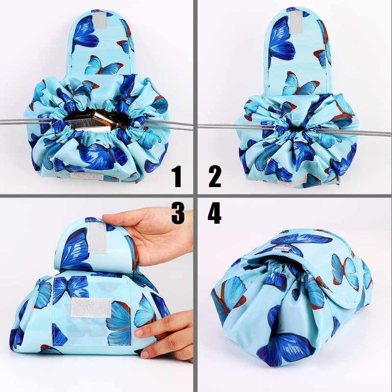 Lazy Drawstring Make up Bag Portable Large Travel Cosmetic Bag Pouch Travel Makeup Pouch Storage Organiser for Women Girl (Butterfly)