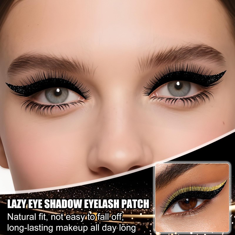 Lazy Eye Shadow Eyelash Patch, 3-in-1 Reusable Eyeshadow, 4 Pairs Natural Waterproof Eyelashes Makeup Stickers Instant,Colorful Eyelash Makeup Stickers, for All Eye Shapes (Black)