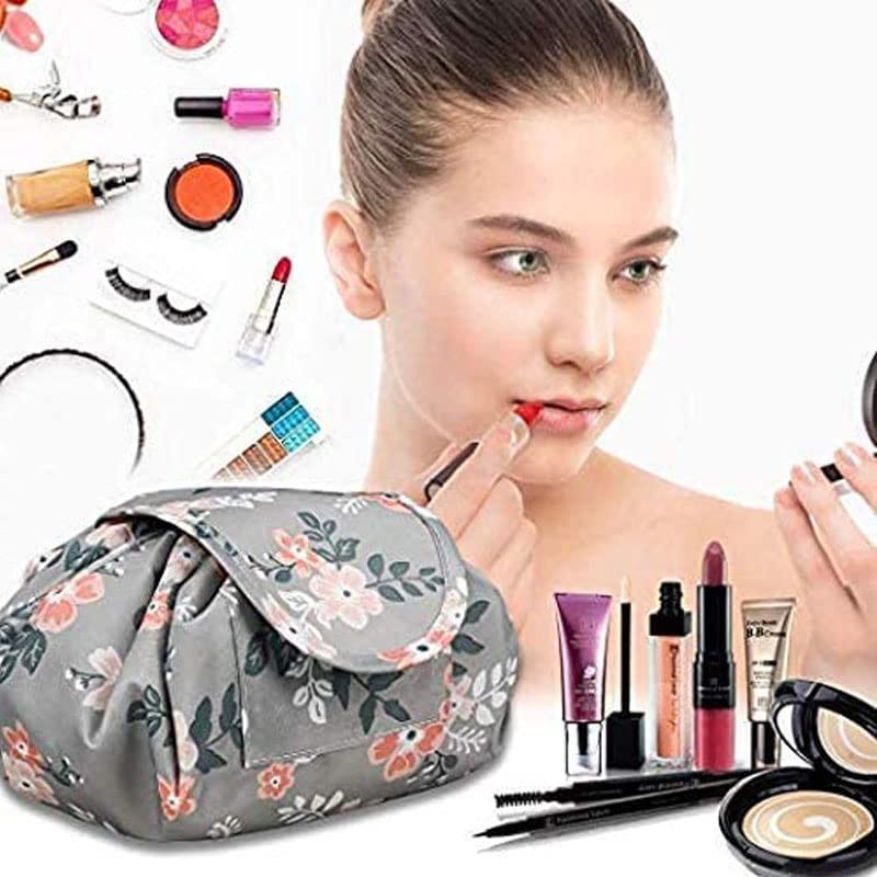 Lazy Makeup Bag, Fumxin Lazy Cosmetic Bag Portable Large Travel Toiletry Bag Pouch Lazy Quick Drawstring Make up Bag Pouch Storage Organiser for Women Girls