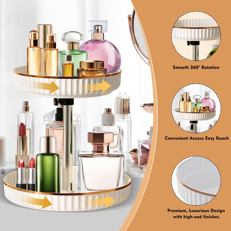 - 360° Smooth Rotation Easy to Access rotating makeup organizer – Effortless spinning mechanism ensures easy access to items from any angle, reducing clutter and maximizing convenience.