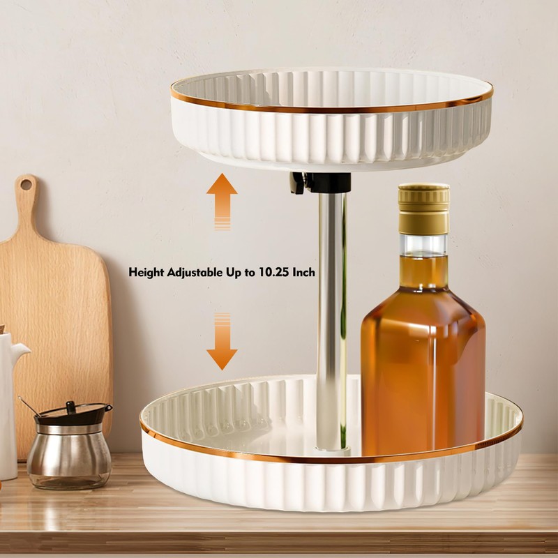 - Height Adjustable & Adaptable Tiered kitchen storage organization -Designed for both form and function, this rotating counter organizer features an adjustable height mechanism to accommodate a variety of bottle sizes with ease.