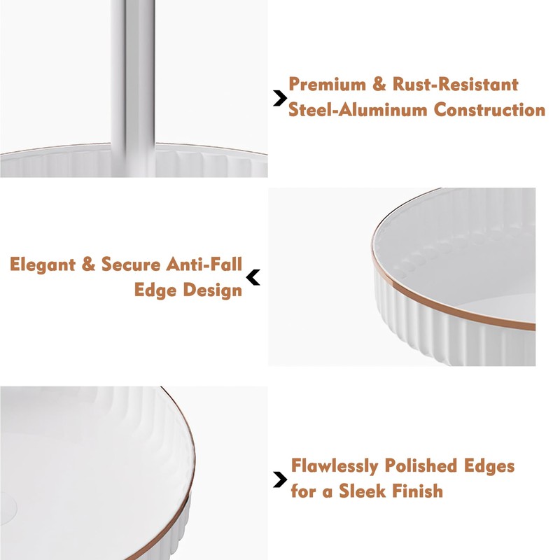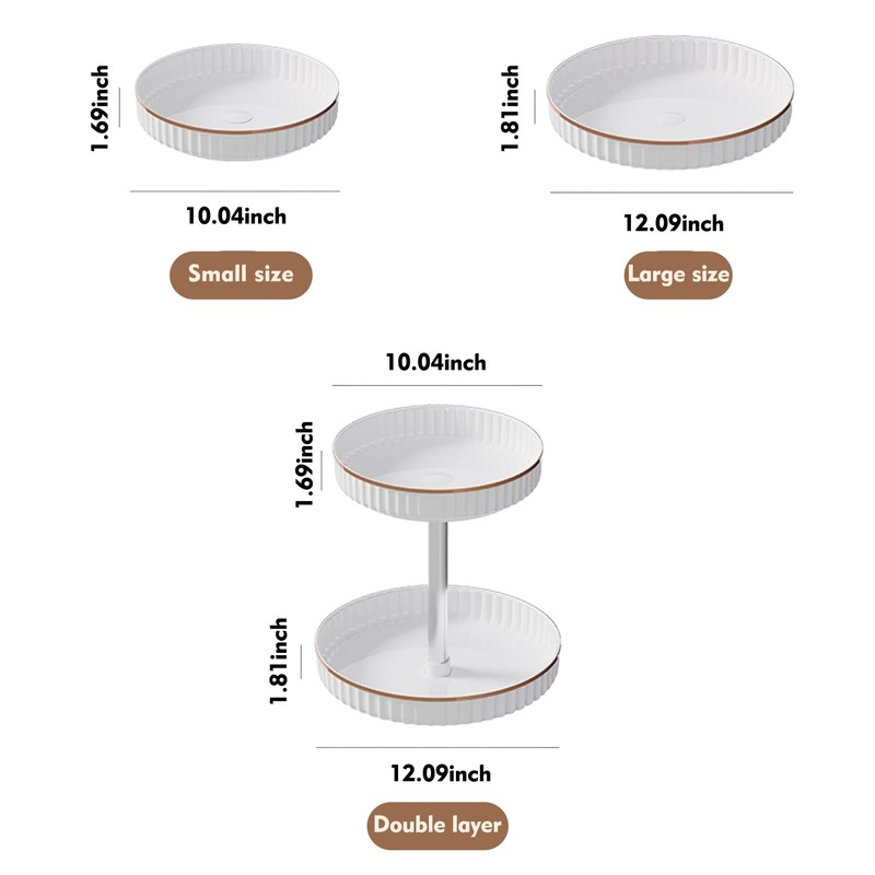 - 2 Tier Rotating Storage with Robust Build Lazy Susan for table top– Dual-level rotation design provides generous, easy-access storage for spices, sauces, snacks, cosmetics, and more—crafted with durability to complement any refined space.