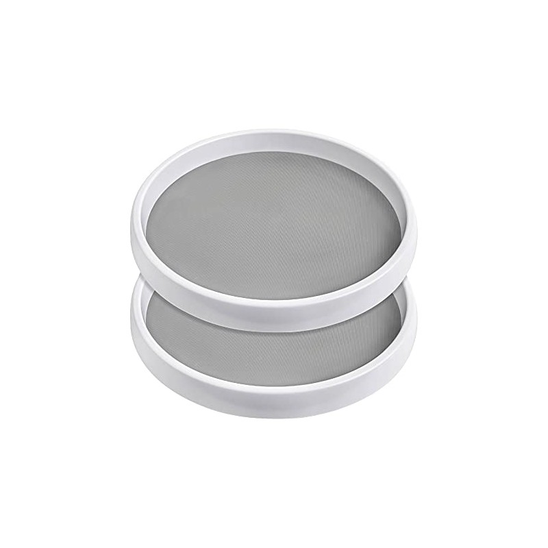 Lazy Susan Turntable 10" | Lazy Susan Organizer for Cabinet, Pantry, Refrigerator, Counter | Plastic with Rubber Lining, White [2 Pcs]