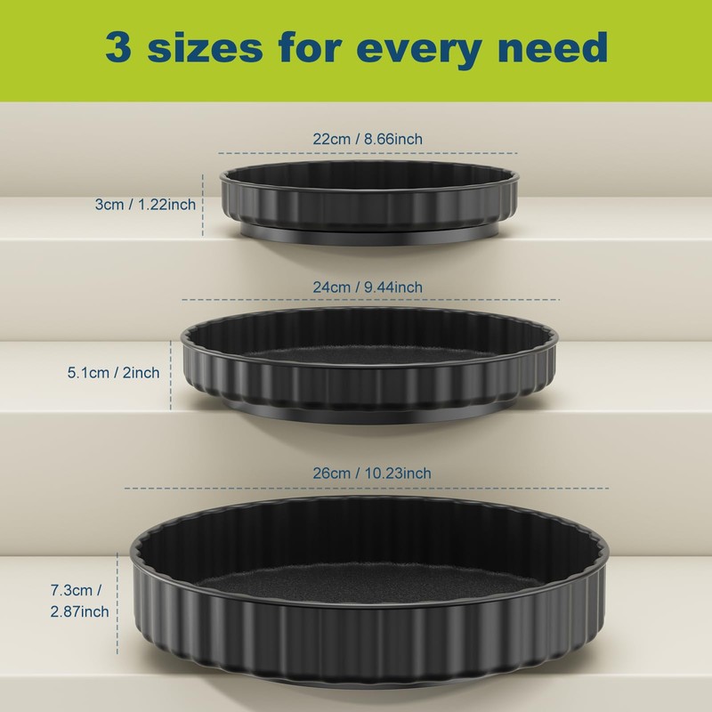 | Size: | 3pcs lazy susan have 3 sizes: 10.2in+9.4in+8.6in |
