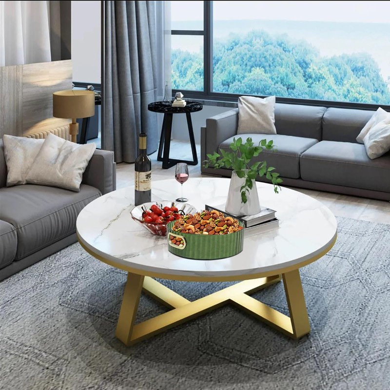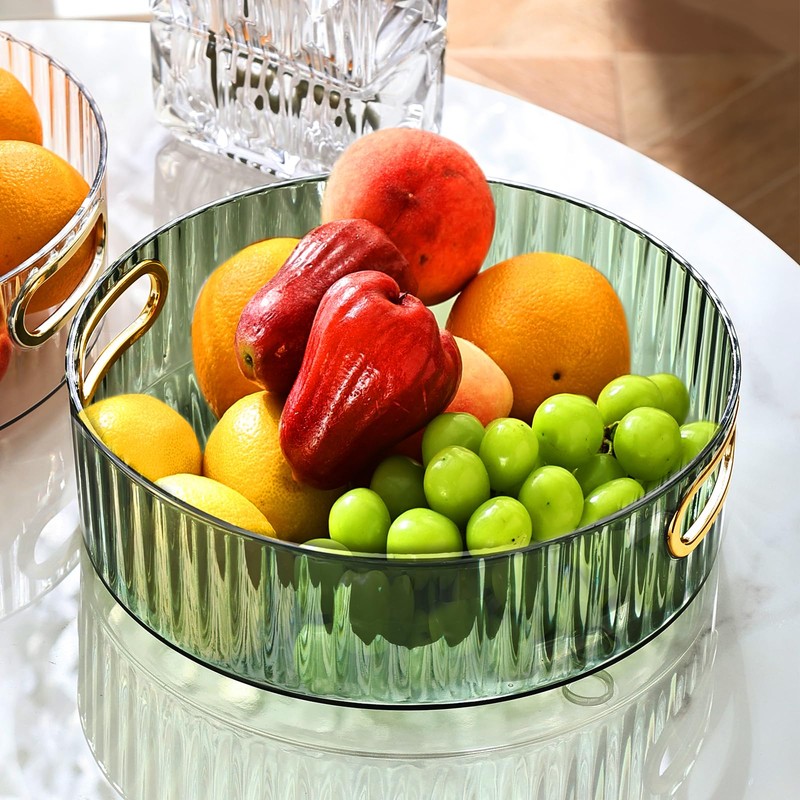 It is also great to use a round rotating tray table for fruit. Guests don't have to get up to take far away fruits, they just need to turn it.