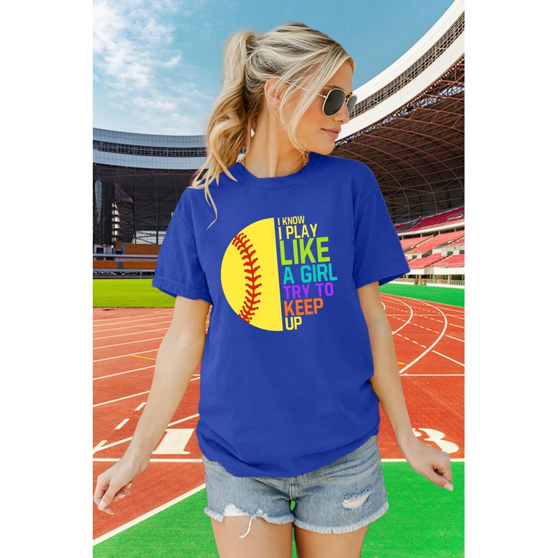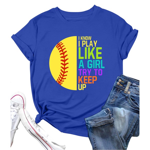 LAZYCHILD Softball Shirts for Women: Funny Softball Mom T-Shirt Love Softball Graphic Shirt Softball Player Tops Blue