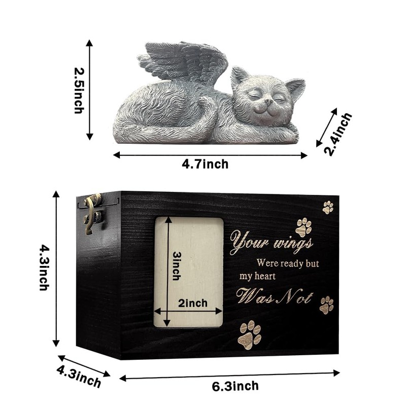 LAZYESTHER Cat Urns for Ashes with Picture, Black Pine Wood, Angel Pattern, Pet Memorial Products, Pet Urn, Cat Urn