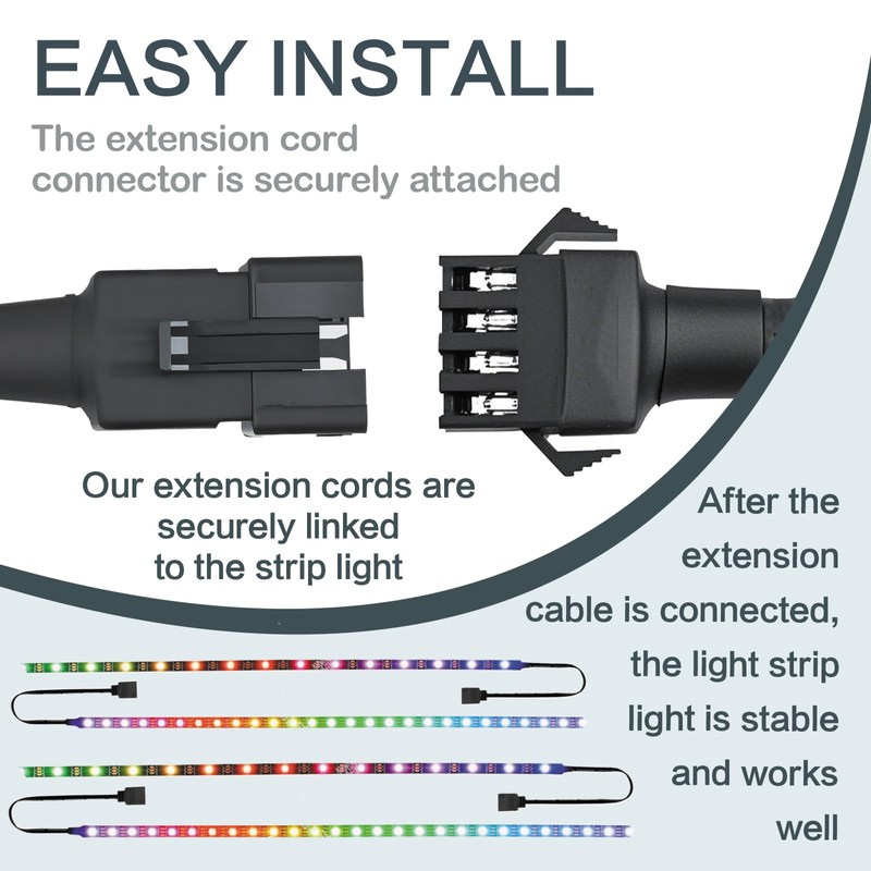 - Effortless Plug-and-Play Setup: Featuring male-to-female 4-pin connectors, these extensions enable quick and tool-free connections. Expand your motorcycle LED underglow kit or rock lights for trucks system instantly – no cutting or stripping wires required.